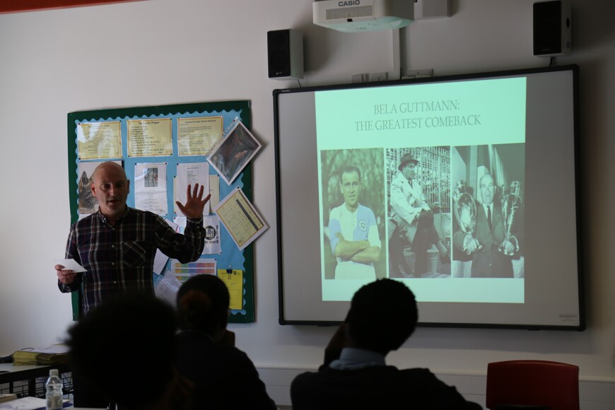 Denzel Dos Reis Futado was rewarded with a copy of David Bolchover’s book ‘The Greatest Comeback: From Genocide To Football Glory’ as Denzel’s own Grandfather played for Benfica (a Portuguese team that Guttmann coached to success). Denzel also asked some insightful questions and showed a great interest in his writing.