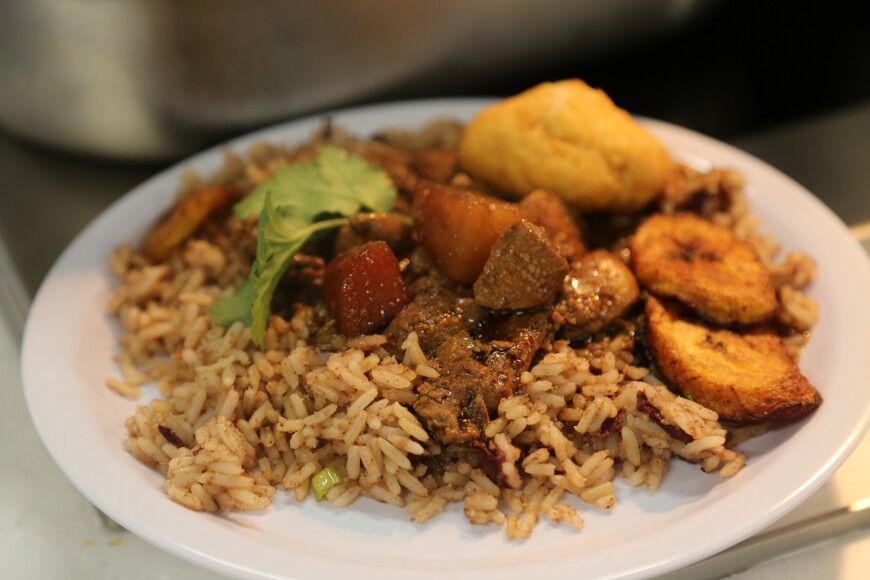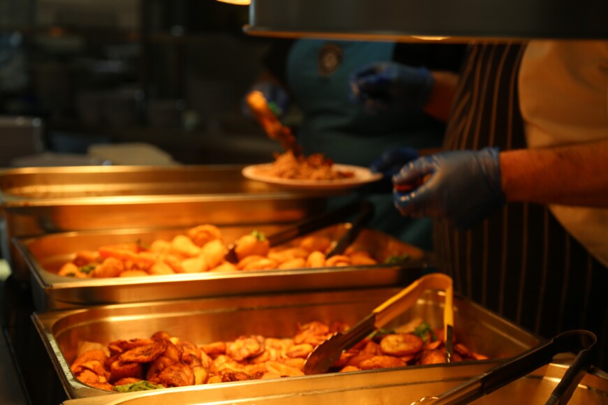 Our Empire Windrush 75 year celebration lunch by Harrison Catering included Brown Stew Chicken with Dumplings, Chick Pea Curry and Roti, Rice and Peas, Fried Plantain followed by Spiced Hummingbird Cake.