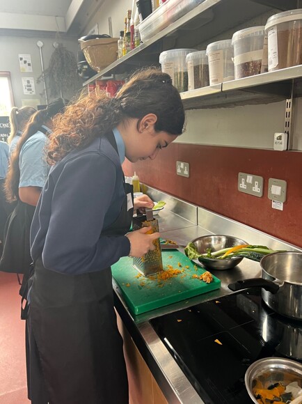‘‘In my cooking session, I enjoyed experimenting with different spices and ingredients and creating a variety of flavours. I also enjoyed the teamwork as I learnt more about my friends and classmates. I learnt many different techniques and recipes that I will try to incorporate when I cook at home.’’ -Daisy Odiaka 8KIM
