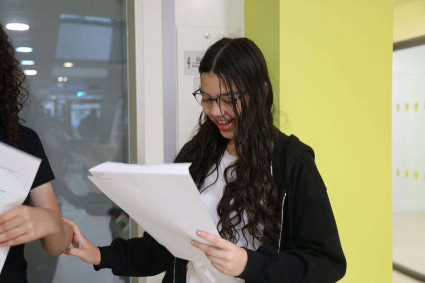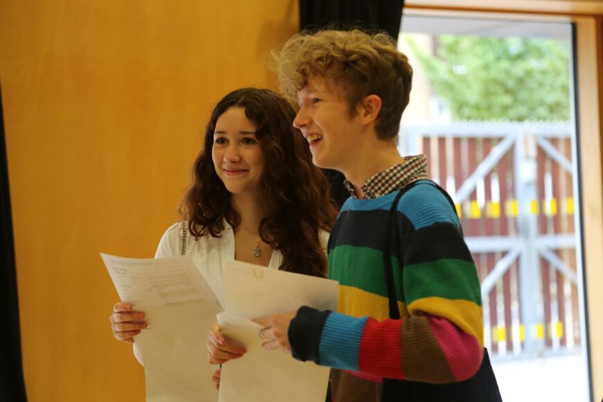 Students collected their GCSE results today and were celebrating a 5% increase in the number achieving five Grade 5s and above compared with last year. Once they had called home to share the news many enroled in our Sixth Form Academy.